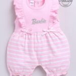 Mom’s Love Barbie Printed Pure Cotton Romper for Infant Girls (L.Pink, Pack of 1)