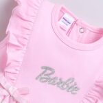 Let your little princess shine in the Barbie Infant “Writing” Romper in soft light pink — a sweet blend of comfort and playful charm. Featuring a Barbie-themed graphic print, this romper adds a fun and fashionable twist to your baby girl’s summer wardrobe.Made from premium interlock cotton, it feels gentle on delicate skin and provides excellent breathability for all-day comfort. With snap-button closures, dressing and diaper changes are quick and fuss-free. Perfect for everyday wear, outings, or as a delightful gift for any Barbie-loving household!