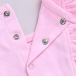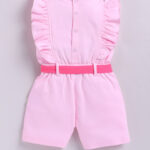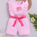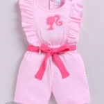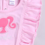 Mom’s love Barbie Printed Pure Cotton Ruffled Jumpsuit for Infant Girls (Pink, Pack of 1)