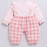 Mom’s Love Checked Pure Cotton Romper for Infant Girls(L.Peach,Pack of 1)