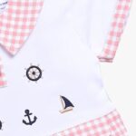 boat print romper, baby girl romper, Peach baby onesie, nautical baby romper, soft cotton baby romper, all season romper, baby outfit, interlock cotton romper, cute infant romper, baby girl clothing
