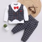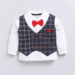 Moms’ Love Checkered Pure Cotton Clothing Set For Infant Boys (Charcoal, Pack Of 1)