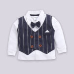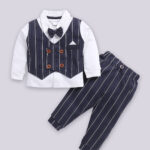 Give your little boy a stylish upgrade with Mom’s Love Bow Attached Pure Cotton Set & Suit in Charcoal. Designed with a charming bow detail and a coordinated top-and-bottom style, this outfit perfectly balances cuteness and sophistication. Crafted from soft interlock cotton, it ensures all-day comfort and breathability, making it suitable for every season. Ideal for family gatherings, festive occasions, or casual outings, this set keeps your infant cozy while looking effortlessly dapper..