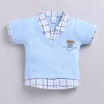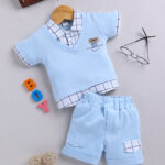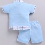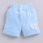 Mom’s Love ColourBlocked Pure Cotton T-Shirt With Shorts For Infant Boys (Light Blue, Pack Of 1)