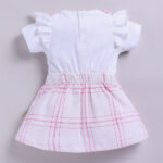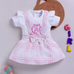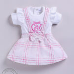 pink white fit flare dress for girls, graphic print cotton blend dress, infant girls sleeveless dress, knee length flared dress for kids, bow detail girls dress, comfortable everyday girls wear