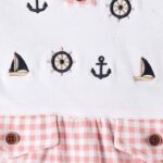 baby boat romper, peacg baby romper, embroidered baby onesie, newborn summer romper, interlock cotton baby outfit, infant boy romper, cute baby clothes, soft cotton romper, baby boat print outfit, summer baby wear