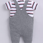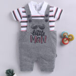 Mom’s Love Little Man Printed Cotton Blend Dungaree For Infant Boys (Grey Melange, Pack Of 1)