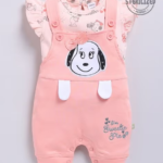 Peanuts baby dungaree, Bela baby girl outfit, dark peach dungaree set, cute baby girl clothes, summer baby dungaree, cotton infant outfit, Peanuts character baby wear, soft cotton baby dungaree, stylish baby outfit online, breathable baby clothing for girls