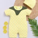 Mom’s Love Pineapple Printed Pure Cotton Romper for Infant Girls (Yellow, Pack of 1)