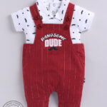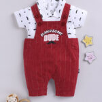 Mom’s Love dungaree, dude print baby dungaree, cotton blend baby outfit, red infant dungaree, baby boy summer wear, infant boys fashion, comfortable baby clothes, breathable baby outfit, stylish baby dungaree, baby apparel India, daily wear dungaree, trendy baby clothing, soft cotton blend dungaree, baby playtime outfit, summer wear for baby boys