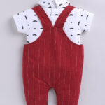 Mom’s Love Printed Cotton Blend Dungaree For Infant Boys (Red, Pack Of 1)