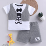 Mom’s Love baby clothes, Infant boys printed set, Mr. print baby outfit, Grey Melange baby set, Cotton blend summer wear, Baby boy co-ord set, Infant boys clothing set, Stylish baby outfit, Soft cotton blend set for babies, Summer wear for baby boys, Comfortable baby clothes, Baby boys casual wear, Cute baby clothing set, Baby apparel India, Infant summer outfit