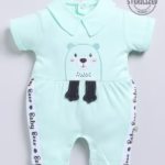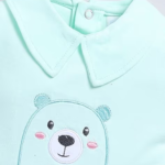 baby bear romper, sea green baby romper, embroidered baby onesie, summer infant romper, interlock cotton romper, baby boy outfit, newborn romper, soft cotton baby clothes, cute bear print baby wear, summer baby fashion
