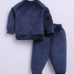 Mom’s Love Self Design Sweatshirt With Joggers Soft Velvet For Infant Boys (Navy, Pack Of 1)