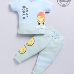 Mom’s Love Smiley World Pure Cotton Co-Ord Set For Infants Boys (P.Blue , Pack Of 1)