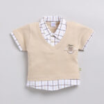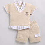 Keep your little one comfortable and stylish with this Beige & White Solid Cotton T-Shirt and Shorts Set for Infant Boys. The T-shirt features a classic shirt collar, short sleeves, and a solid design, while the matching shorts come with a convenient slip-on closure for easy dressing. Crafted from soft and breathable pure cotton, this set ensures all-day comfort, making it perfect for casual outings, playtime, or everyday wear.