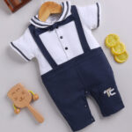 Dress your little boy in style with Mom’s Love Solid Pure Cotton Romper in Navy Blue. Designed with a charming suspender-look detail, this romper adds a smart and playful touch to your infant’s summer wardrobe. The soft interlock cotton fabric ensures superior comfort and breathability, making it ideal for all-day wear. With its easy-to-wear design and gentle texture, it’s perfect for daily outings, nap time, or playtime adventures.