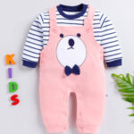 Keep your little one comfortable and stylish with this Striped Cotton Romper from Moms Love. Designed in a soft peach color, this romper features a round neckline and full sleeves for a cozy fit. Made from breathable cotton fabric, it is gentle on delicate skin and perfect for everyday wear, playtime, or casual outings.