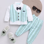 Mom’s Love Striped Printed Set And Suit Pure Cotton For Infant Boys (Green, Pack Of 1)