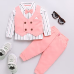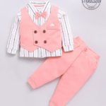 Add a touch of charm to your little boy’s wardrobe with Mom’s Love Line Pattern Pure Cotton Set & Suit in Peach. Featuring a subtle line pattern and a coordinated top-and-bottom style, this outfit offers the perfect mix of comfort and style. Crafted from soft interlock cotton, it ensures breathability and all-day coziness—ideal for every season. Perfect for playdates, casual outings, or special family occasions, this set keeps your infant looking adorable and feeling comfortable all day long..