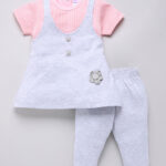 Moms Love Striped Tunic & Solid Cotton Trousers Set for Infant Girls (Grey & Pink, Pack of 1)