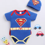 Bring out the superhero in your little one with this blue Superman-printed bodysuit for boys. Featuring a round neck, short sleeves, and a snap button closure at the crotch for easy diaper changes, this bodysuit also comes with a detachable cape and a matching cap to complete the heroic look. Made from 100% cotton, it is soft, breathable, and perfect for all-day casual comfort.