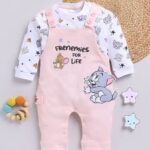 Mom’s Love Tom & Jerry Printed Pure Cotton Dungaree For Infant Boys (Light Peach, Pack Of 1)
