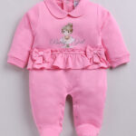 Mom’s love Printed Pure Cotton Sleepsuits for Infants Girls (Medium Pink, Pack of 1)
