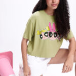 Show off your playful side with this Powerpuff Girls Printed Boxy T-shirt for women. Featuring a fun Powerpuff Girls humour and comic print, this olive green and pink tee adds a burst of personality and nostalgia to your casual wardrobe. The boxy silhouette and drop-shoulder sleeves offer a relaxed, trendy fit that combines comfort with effortless style. Designed with a round neckline and regular length, it pairs perfectly with jeans, shorts, or joggers for an easy, everyday look. Crafted from soft knitted viscose rayon fabric, it ensures breathability and a lightweight feel — ideal for all-day wear. Whether you’re lounging, running errands, or meeting friends, this Powerpuff Girls tee adds charm and fun to your casual outfits.