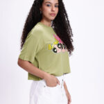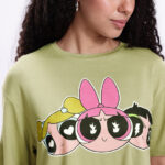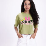 Powerpuff Girls printed t-shirt for women, boxy fit t-shirt women, drop shoulder t-shirt, olive green and pink t-shirt, cartoon print t-shirt women, humour and comic print t-shirt, round neck casual tee, Powerpuff Girls merchandise t-shirt, graphic print t-shirt for women, stylish boxy fit t-shirt, relaxed fit t-shirt women, viscose rayon t-shirt, women’s casual wear, cute cartoon t-shirt, oversized t-shirt women, comfy everyday tee, trendy Powerpuff Girls top, summer casual t-shirt women, fashionable graphic t-shirt, women’s printed tops online