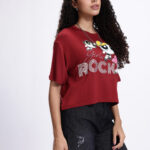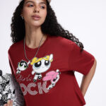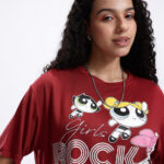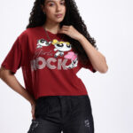 Channel your inner superhero with this Powerpuff Girls Printed Maroon Boxy Fit Crop T-shirt for women. Featuring a fun Powerpuff Girls humour and comic print, this tee brings a playful and nostalgic vibe to your casual wardrobe. The boxy silhouette and crop length offer a trendy, relaxed look, while the drop-shoulder sleeves add effortless style. Made from soft knitted viscose rayon fabric, it ensures breathable comfort, making it perfect for daily wear, outings, or relaxed weekends.