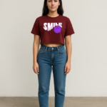 Add a cheerful twist to your casual style with this Smiley World Typographic Print Boxy Fit Top for women. Featuring a playful slogan print that radiates positivity, this trendy piece blends comfort with effortless fashion. Made from soft viscose fabric, it offers a lightweight, breathable feel — perfect for relaxed outings or casual hangouts. The round neck, short length, and boxy fit give it a cool, laid-back vibe that pairs perfectly with jeans, joggers, or skirts.