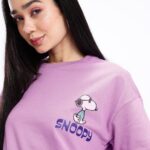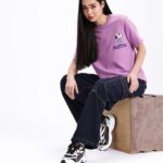 Embrace playful comfort with this Snoopy Printed Oversized T-shirt in a soothing lavender shade. Featuring a quirky Snoopy humour and comic print at the back, this tee brings a dose of nostalgia and fun to your casual look. Made from soft knitted cotton, it ensures breathability and a relaxed feel all day long. The oversized fit, round neckline, and drop-shoulder sleeves make it a perfect pick for off-duty days, lounging, or weekend outings. Pair it with jeans, shorts, or joggers for an effortlessly cool vibe.