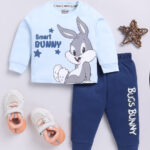 Tinyo boys clothing set, blue Bugs Bunny printed cotton t-shirt and navy joggers, round neck long sleeve t-shirt, slip-on printed joggers, soft breathable boys outfit, machine washable casual set