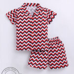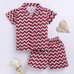 Be the first to review “Tinyo Boys Chevron Printed Pure Cotton Shirt with Shorts (Red, Pack of 1)”