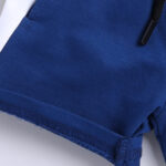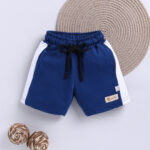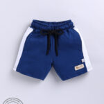 Tinyo boys shorts, cotton mid-rise shorts, blue colourblocked shorts, knee-length casual shorts for boys, drawstring closure shorts, breathable cotton boys shorts, regular fit boys shorts, machine washable kids wear, Tinyo kids apparel