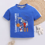 Keep your little one playful and comfortable with the Tinyo Boys Looney Tunes Printed Pure Cotton T-Shirt. Designed in blue with a full-front humour and comic print, it features a round neck, short regular sleeves, and a regular fit for easy wear. Made from 100% pure knitted cotton, this t-shirt ensures soft comfort, breathability, and lasting durability for casual everyday wear.