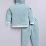 Add a sporty, collegiate edge to his winter wardrobe with this Tinyo Boys “Los Angeles” Hoodie Set. This vibrant green coordinate set features a classic “LOS ANGELES” graphic print on the chest, accented with “WEST COAST – EST. 1975” text. The matching sweatpants complete the look with a vertical “LOS ANGELES” print down the leg. Crafted from premium fleece fabric, this set is designed to provide essential warmth and a soft, plush feel for all-day comfort. The hoodie is styled with a functional hood, a spacious kangaroo pocket, and unique navy and white striped ribbing at the cuffs and hem for a standout athletic finish.