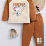 TINYO Boys Peanuts Printed Round Neck Sweatshirt & Joggers Set (Brown, Pack of 1)