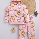 TINYO Boys Smiley World Printed Sweatshirt & Joggers Set (Pink, Pack of 1)