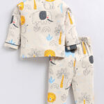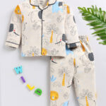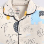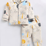Ensure your little one sleeps comfortably in style with the Tinyo Conversational Printed Pure Cotton Night Suit for infant boys. This night suit features a blue conversational printed shirt with a lapel collar and long sleeves, paired with matching pyjamas that have an elasticated waistband and slip-on closure for easy dressing. Made from 100% pure cotton, the fabric is soft, breathable, and gentle on delicate skin. Designed in a regular fit, this night suit is perfect for bedtime or lounging at home and is easy to care for with machine wash.