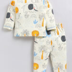 Tinyo Conversational Printed Pure Cotton Night Suit For Infant Boys (Cream, Pack Of 1)