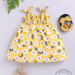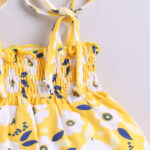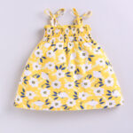 Dress your little one in everyday charm and comfort with the Tinyo Floral Print Smocked Cotton Fit & Flare Dress for infant girls. This yellow and white floral print dress features shoulder straps, a sleeveless design, smocked detailing, and a knee-length flared hem. Crafted from soft cotton, it ensures breathable comfort and easy movement for your little one throughout the day.