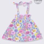 Tinyo infant girls dress, floral print cotton dress, smocked strappy dress for infants, square neck baby girls dress, multi colour kids dress, Tinyo kids apparel, machine washable infant dress