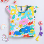 Tinyo Floral Printed Cotton Top For Girls (Multicolour, Pack Of 1)