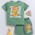 Tinyo Garfield Printed Pure Cotton T-Shirt & Shorts Set For Boys (Green, Pack Of 1)