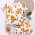 Tinyo infant boys set, Garfield printed cotton t-shirt & shorts, pure cotton kids set, round neck t-shirt for boys, snap button t-shirt, slip-on shorts for infants, lightweight cotton infant wear, machine washable kids outfit, Tinyo kids apparel