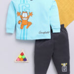 Tinyo Garfield Printed Pure Cotton T-shirt With Joggers For Infant Boys (Blue, Pack Of 1)