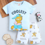 Tinyo Garfield Printed Pure Cotton T-shirt With Shorts For Infant Boys (Blue, Pack Of 1)