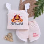 TINYO Girls Paw Patrol Printed Pure Cotton Top with Shorts (Peach, Pack of 1)